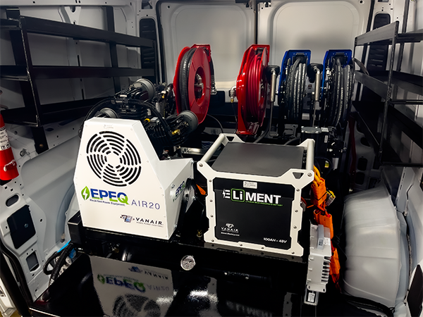 Vanair has launched EPEQ IDLE MITIGATION, the latest addition to its EPEQ Electrified Power Equipment line. EPEQ IDLE MITIGATION is an end-to-end system that automatically turns off the vehicle’s engine when not used, allowing fleets to operate power equipment on job sites with zero emissions and significantly reduced noise. The system can be paired with a telematics package to provide valuable usage information to fleet managers. EPEQ IDLE MITIGATION can also be designed to turn the vehicle on/off based on run time or battery state of charge using the onboard vehicle battery or the EPEQ ELiMENT LiFePO4 auxiliary battery.